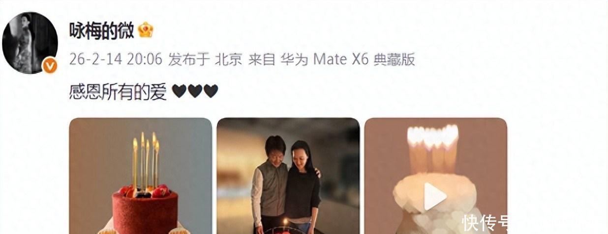 于是,咏梅在其社交账号上分享了生日当天拍的照片。正中间那张照片,是咏梅和她丈夫栾树的合照。