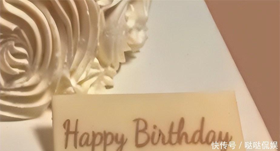 蛋糕左下角摆着一张卡片,上面用英文写着“生日快乐”。仅看这张照片,根本无法猜出这个蛋糕是谁送的。